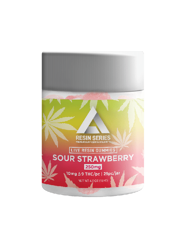 Our Sour Strawberry Live Resin Delta-9 THC Gummies are Hemp derived using less than 0.3% of Live Resin Delta-9 THC. We use just enough Delta-9 THC in order to produce that familiar feeling that you’ll love and enjoy. Our Sour Strawberry Live Resin Gummies feature 10mg of Delta-9 THC per piece which totals 250mg per jar.