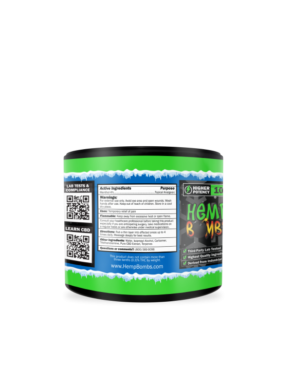 Hemp Bombs 1 oz. CBD Pain Freeze delivers 100 milligrams of premium CBD and soothing ingredients, like menthol, to ease aches and pains in muscles and joints. This small container is perfect for on-the-go activities and fitness recovery after intense workout sessions. This bio-cooling gel provides quick results when you need it most.