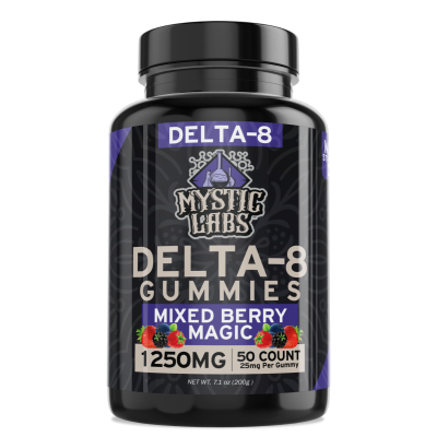Enjoy complete relaxation and comfort with 50-count Mystic Labs™ Delta 8 Gummies. Made with premium Delta 8 THC sourced from high-quality, American-grown Industrial Hemp, these gummies are safe and potent. They’re tasty, too, with a variety of delicious flavors to choose from. 25mg of Delta 8 THC per gummy 50 gummies per bottle 1250mg of Hemp-derived Delta 8 per bottle $0.05 per milligram of Delta 8 THC Derived from premium Industrial Hemp Available in a variety of delicious flavors Tested by Independent Labs Made in the USA