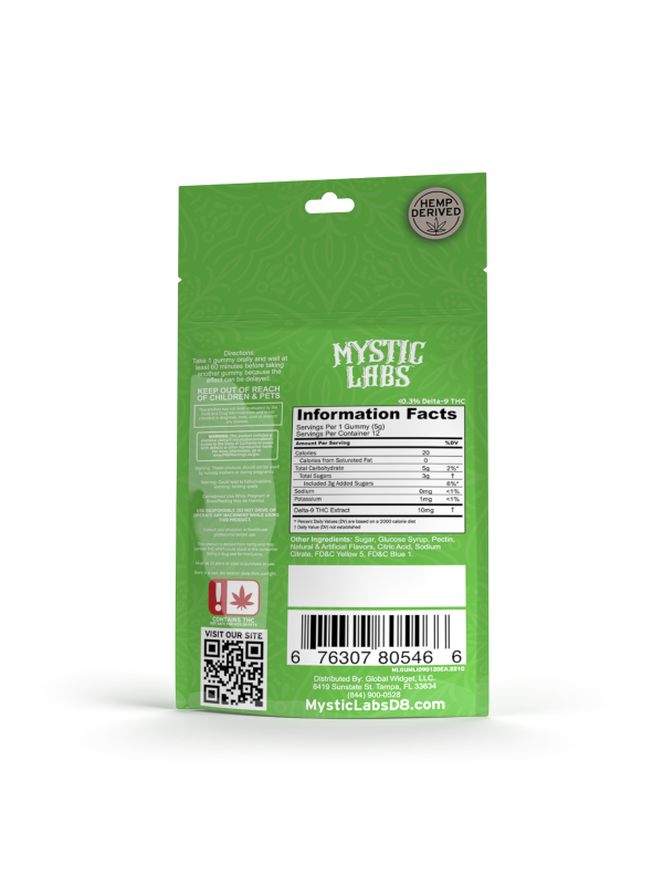 Mystic Labs™ 12ct Delta 9 Gummies are the tastiest way to improve your relaxation. We infuse each edible with a max-strength 10mg serving of Industrial Hemp-derived Delta 9 THC. Our 12ct Delta 9 Gummies are available in assorted flavors.