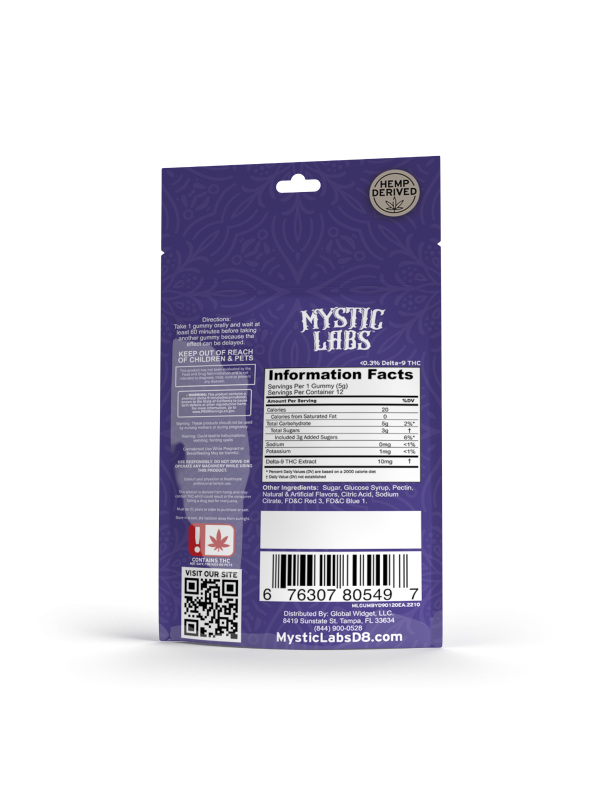 Mystic Labs™ 12ct Delta 9 Gummies are the tastiest way to improve your relaxation. We infuse each edible with a max-strength 10mg serving of Industrial Hemp-derived Delta 9 THC. Our 12ct Delta 9 Gummies are available in assorted flavors.
