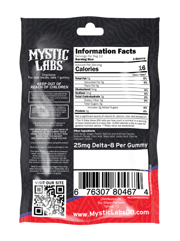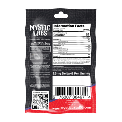 Mystic Labs™ gummies are made with American-grown, Industrial Hemp-derived Delta 8. Each gummy contains 25mg of premium Delta 8 to encourage a greater sense of comfort and relaxation. Our Delta 8 gummies are available in a variety of delicious flavors for easy consumption.