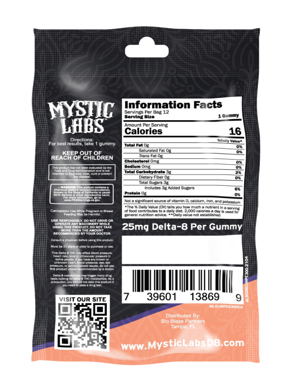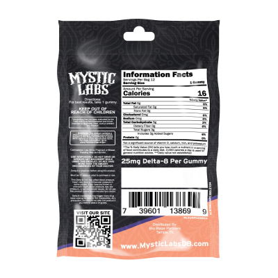 Mystic Labs™ gummies are made with American-grown, Industrial Hemp-derived Delta 8. Each gummy contains 25mg of premium Delta 8 to encourage a greater sense of comfort and relaxation. Our Delta 8 gummies are available in a variety of delicious flavors for easy consumption.