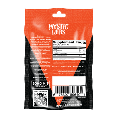 Mystic Labs™ 5ct Kratom Gummies deliver the all-encompassing effects of Kratom in a bite-sized edible. Our Kratom-infused gummies feature a delicious blood orange flavor and contain a max-strength 30mg serving of Mitragynine (MIT) per gummy. Product Info 30mg of Mitragynine (MIT) per gummy 5 gummies per bag 150mg of Mitragynine (MIT) per bag Mixed berry flavor Tested by Indpendent Labs Manufactured in the USA