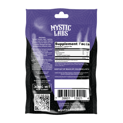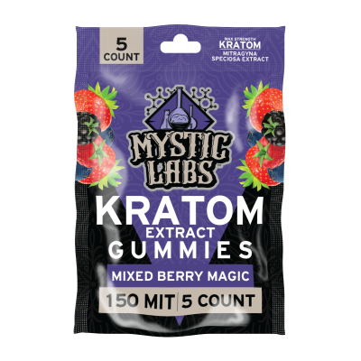 Mystic Labs™ 5ct Kratom Gummies deliver the all-encompassing effects of Kratom in a bite-sized edible. Our Kratom-infused gummies feature a delicious mixed berry flavor and contain a max-strength 30mg serving of Mitragynine (MIT) per gummy.